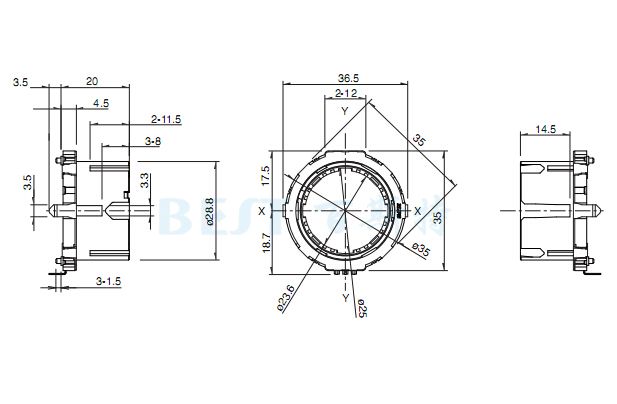 EC35A編碼器也可稱為環(huán)形編碼器、中空編碼器、阿爾卑斯編碼器等,有金屬軸/絕緣軸/貫通軸/中空軸等類別之分。旋轉(zhuǎn)柄的直徑為28.8mm,高度 20mm,因其本體厚度4.5mm的薄型化和良好的操作感覺(jué),現(xiàn)大量使用于汽車音響的音量調(diào)節(jié)、空調(diào)溫度調(diào)節(jié)、洗衣機(jī)功能選擇、電磁爐、微波爐、烤箱溫度 調(diào)節(jié)等產(chǎn)品上面。