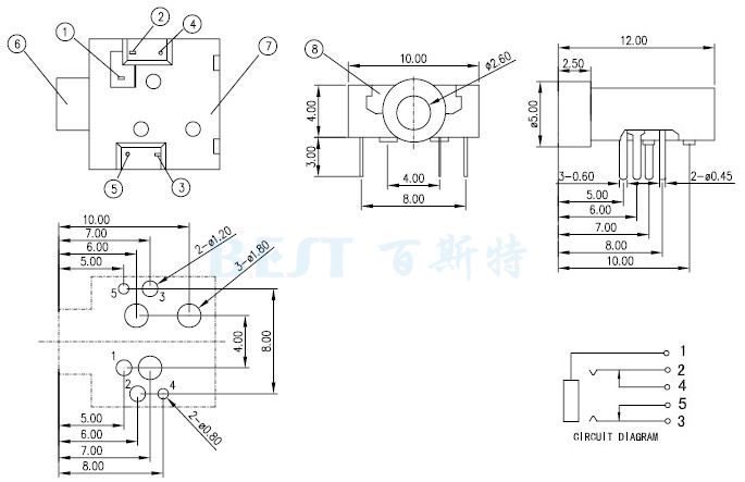 2.5耳機(jī)插座PJ-204技術(shù)參數(shù)